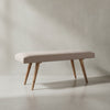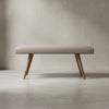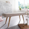 - DESIGN: Retro-inspirierte Sitzbank mit klaren Linien, weicher Polsterung und schlanken Holzbeinen
