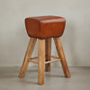 Barhocker – Ziegenleder und Mango Massivholz, Turnbock-Design, 43x75x43 cm, Dunkelbraun