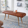 KADIMA DESIGN Sitzbank Echtleder 115 cm Springbock Lederbank Flurbank Massivholz Bank