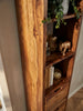 - Das Regal besticht durch seine ausdrucksstarke Holzmaserung, die durch eine schützende Klarlackbeschichtung betont wird.