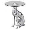 Beistelltisch – Aluminium Glas Silber Skulptur Windhund 55x40 cm handgefertigt
