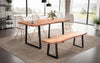 - MASSIV: Hochwertige Akazienholzplatte mit Baumkante, pulverbeschichtete Metallfüße