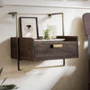 - Korpus: dunkelbraun lackiertes Mango Massivholz (zusätzlich mit Klarlack beschichtet)