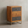 Nachttisch Massivholz Steinoptik 3 Schubladen Metallgestell