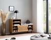 - PRAKTISCHER FLURHELFER: Man setzt sich gerne hin, um gemütlich in die Schuhe zu schlüpfen oder diese wieder auszuziehen. Damit die Schuhe aber nicht im Flur herumstehen, bietet Dir diese Schuhbank in Eiche-Dekor insgesamt sechs Fächer an, in denen du bis zu zwölf Paar Schuhe unterbringst. Durch die Schiebetür mit Wiener Geflecht lassen sich zwei große Regalfächer verdecken, sodass dein Flur stets aufgeräumt ist