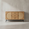 Sideboard – Eiche-Dekor/Rattan, 140x80x40 cm, 2 Türen, 3 Schubladen, hoch