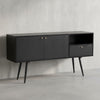 - VIEL STAURAUM: Entdecke die Eleganz des zeitlosen Designs mit unserem Sideboard, das Dir eine Oberfläche in schwarzem Eiche-Dekor präsentiert. Der vielseitige Schrank bietet Dir mit einer Schublade, zwei Türfächern und einem offenen Fach reichlich Stauraum für all Deine Essentials. Die erhöhten Beine schaffen zusätzlichen Platz darunter, ideal für ein sauberes und aufgeräumtes Ambiente in Deinem Zuhause