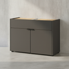- MATERIALIEN UND AUSSTATTUNG: Korpus und Platte aus robuster Spanplatte, Griffe aus Metall, 3 Türen, 4-Fuss-Gestell