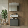 Verleihen Sie Ihrem Badezimmer mit diesem Waschbeckenunterschrank aus dem Hause Kadima Design eine Note von zeitloser Eleganz. Ob in modernem Steingrau oder markantem Graphit – dieses Möbelstück verkörpert die Philosophie unserer Marke: Ästhetik trifft auf Funktionalität. Die klaren Konturen, kombiniert mit schwarzen Griffleisten aus pulverbeschichtetem Metall, machen diesen Schrank zum Herzstück Ihres Bades. Dank der hochwertigen Melaminharzbeschichtung profitieren Sie von einer Oberfläche, die nicht nur edel aussieht, sondern auch den täglichen Anforderungen mühelos standhält.
